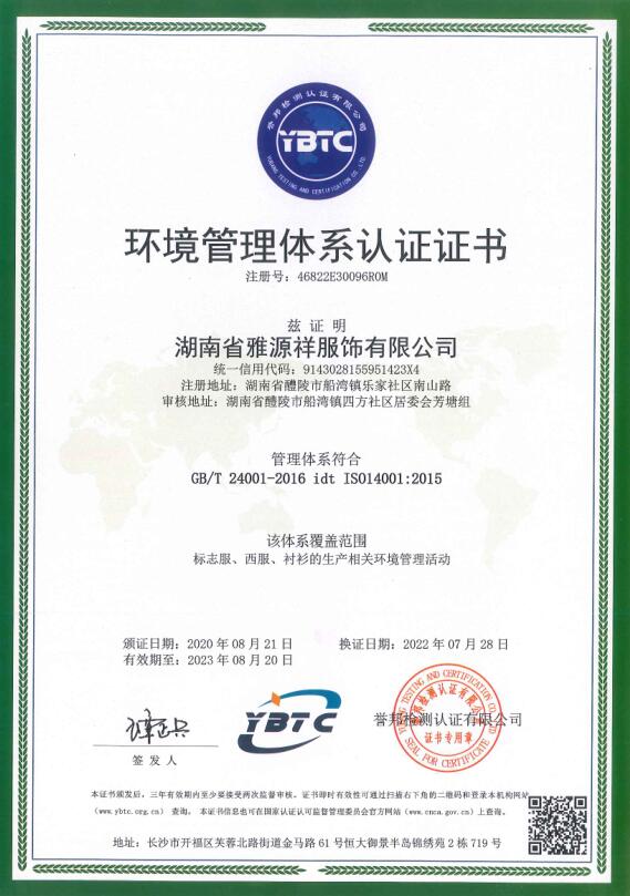 環境管理體系認證證書
